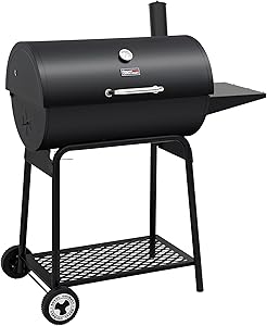 The Royal Gourmet CC1830 is a classic barrel-style charcoal grill offering 627 square inches of total cooking space, ideal for parties and gatherings. It features a warming rack to keep food hot while you prepare larger batches. The adjustable charcoal pan ensures efficient heat distribution, and a side air vent allows for better smoke control. Its sturdy construction makes it reliable for frequent use, while the large cooking surface accommodates everything from burgers to ribs. Affordable and functional, this grill is perfect for backyard grilling enthusiasts.